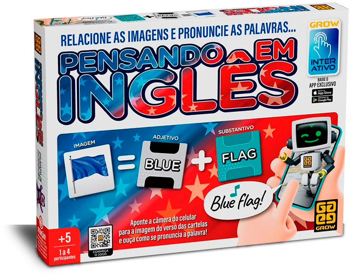 O Pensando em Inglês é a segunda experiência em realidade aumentada integrada ao aplicativo Grow Interativo, ampliando a conexão entre jogos físicos e o universo digital.